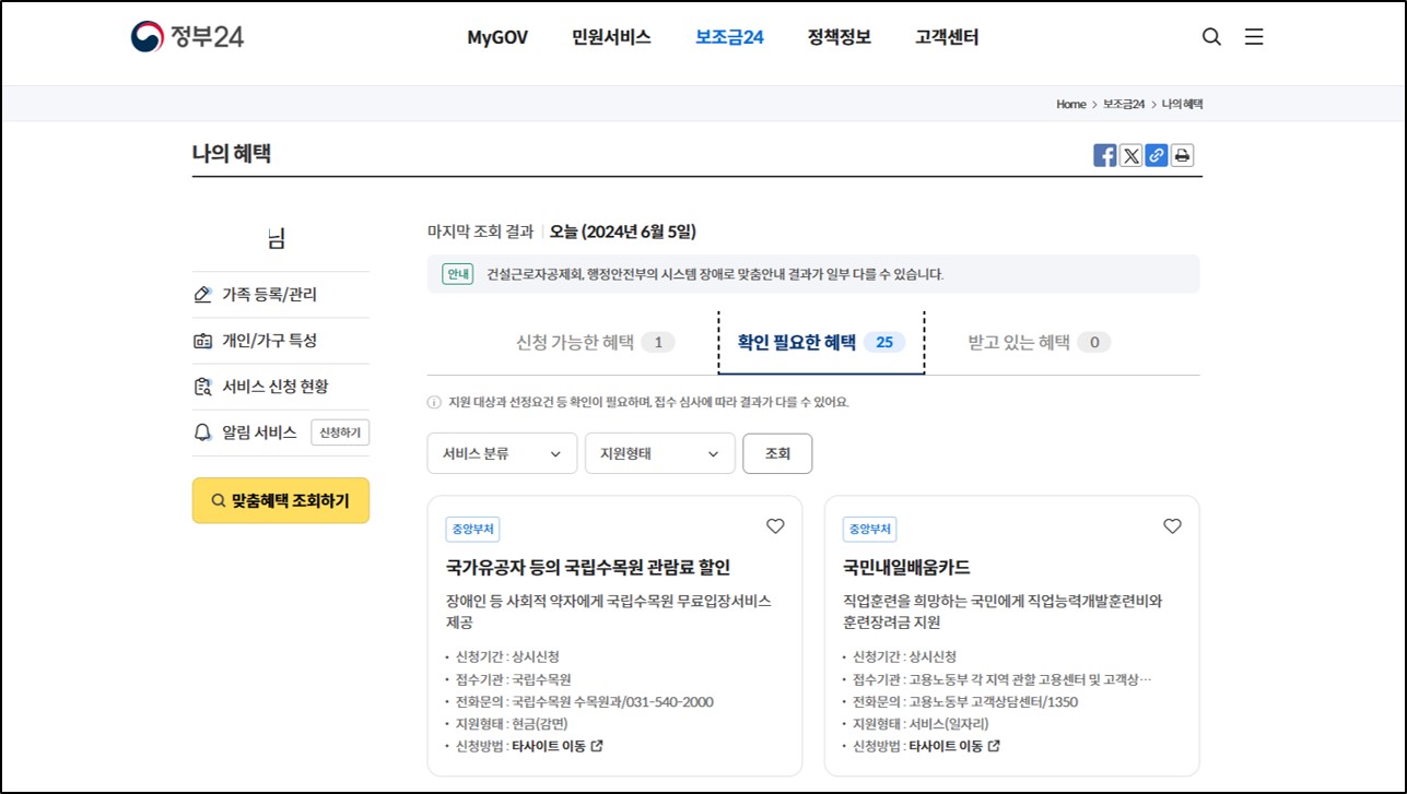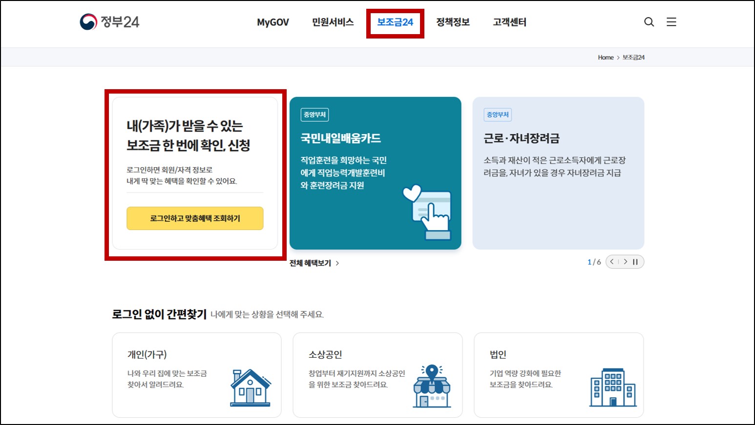 그래서 정부에서는 본인이 받을 수 있는 지원 혜택뿐만 아니라 가족들이 받을 수 있는 정부 지원에 대해서도 빠짐없이 안내받을 수 있는 보조금24 복지멤버십 제도를 시행하고 있습니다.